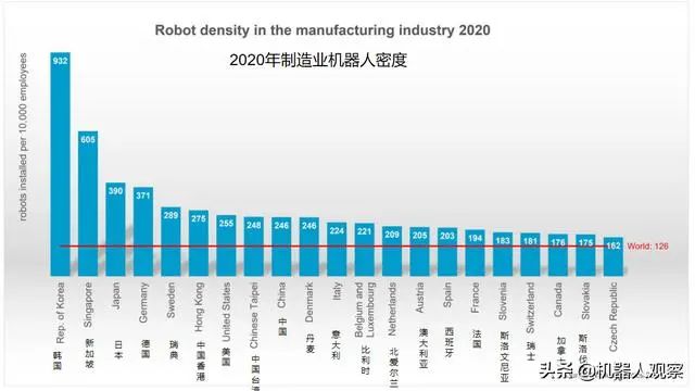 全球工業機器人密度排名:中國位居第9,5年上升15位